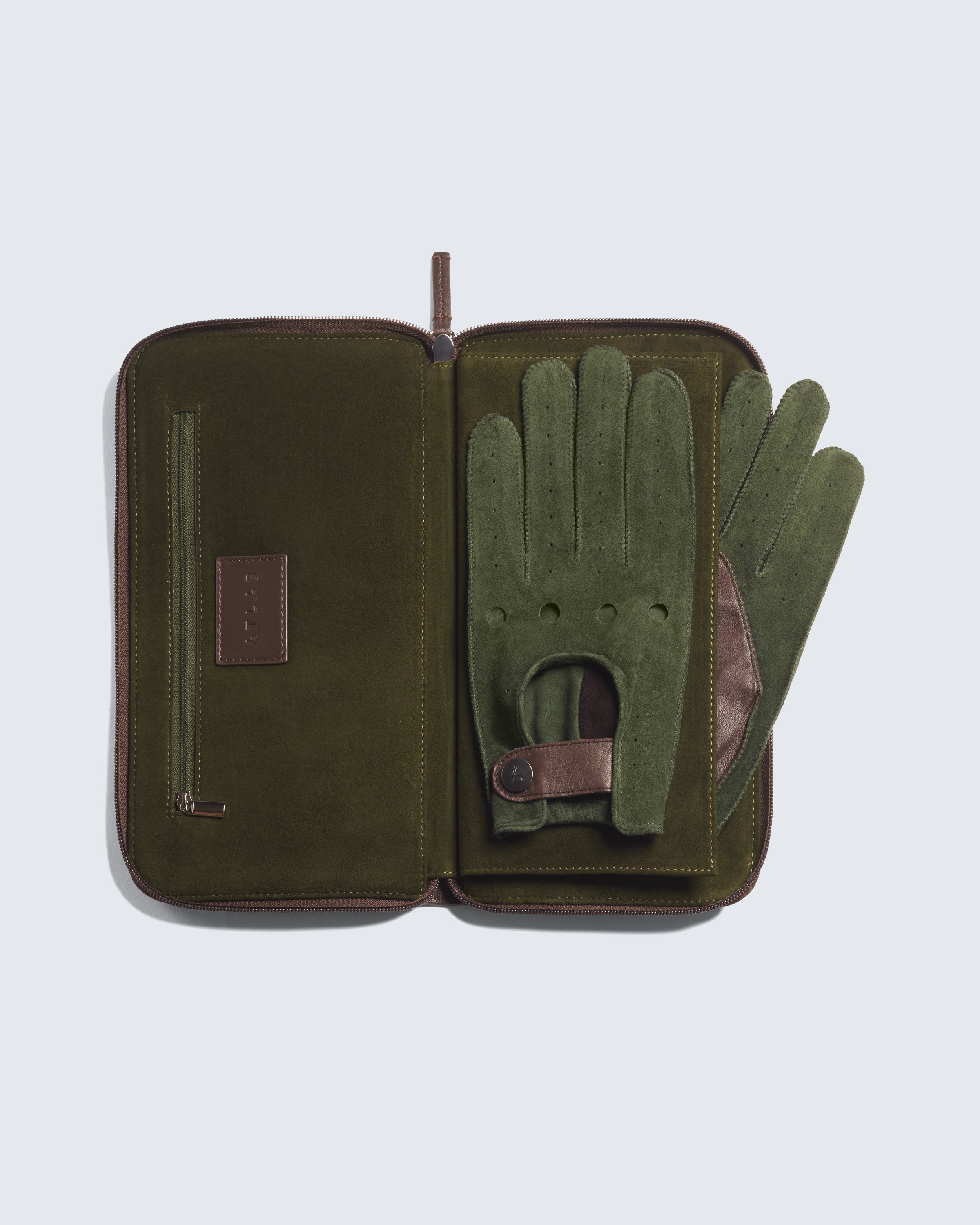 The Green Suede Racing Gloves Set is designed for drivers and collectors who value material nuance and functional design. It reflects a quieter approach to luxury - focused on texture, comfort, and longevity.